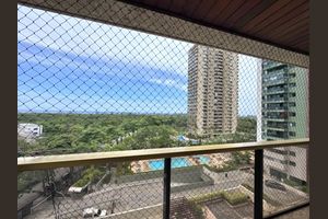 Estamos dentro de um condomínio aprazível, com piscina, sauna, quadras de esporte (inclusive vôlei de praia), academia de ginástica, spa, parque infantil, salão de jogos e com ônibus circular à disposição, além de excelentes restaurantes, supermercados, farmác ...