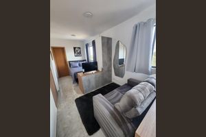 A frente do portão do prédio tem ponto de ônibus (´só dar alguns passos) que leva ao centro da cidade e vários bairros interligados. Do lado direito tem uma panificadora (menos de dez metros) prósima quadra tem um hiper mercado EXTRA , na frente posto de gaso ...