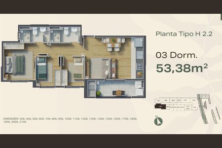 53 m² · 2 quartos · 1 vaga