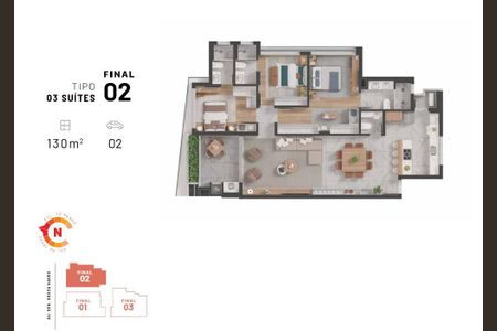 130 m² · 3 quartos · 2 vagas