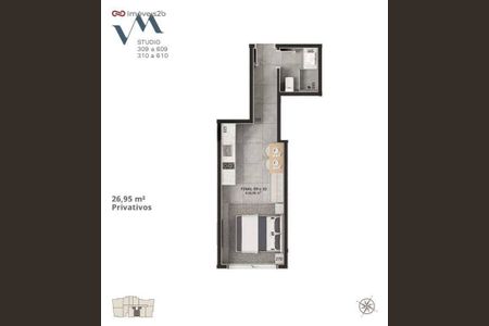 Studio com 1 quarto.