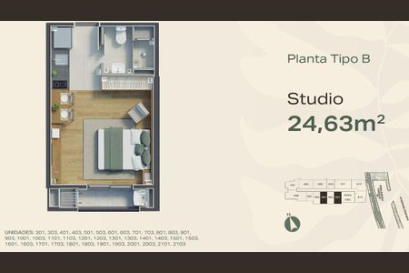 Studio à venda em Água Verde de 21 m² com varanda e churrasqueira.