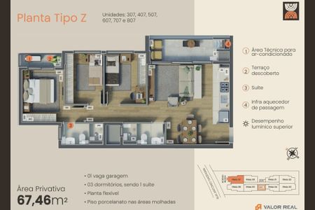 67 m² · 3 quartos · 1 vaga