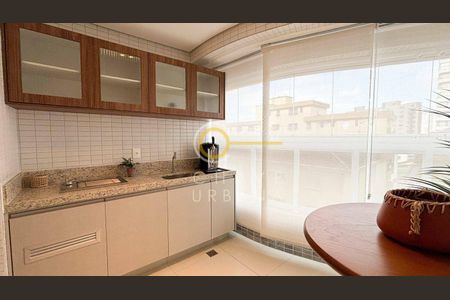 Apartamento com varanda e 1 quarto. Conta com piscina e churrasqueira.