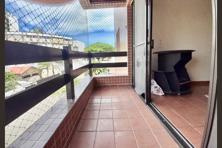 Apartamento com varanda e 3 quartos. Conta com piscina e churrasqueira.