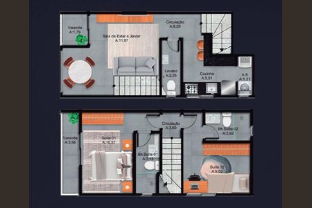 54 m² · 2 quartos · 1 vaga