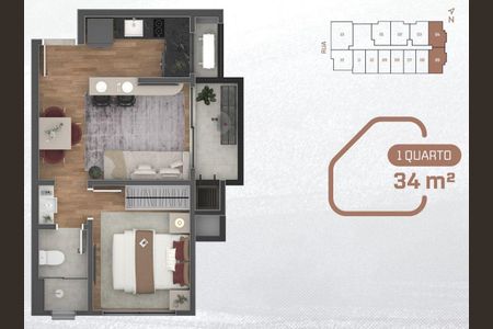 34 m² · 1 quarto