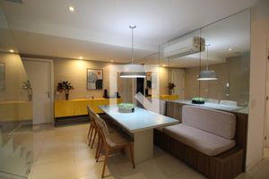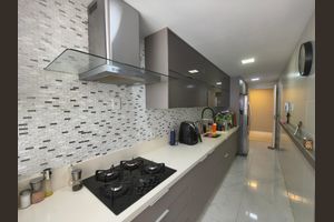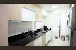 Ele dispõe de ambiente intimista para cozinhar e receber visitas.