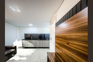 Ele dispõe de espaço útil para lavar roupas, espaço coberto para entreter as crianças e equipamentos para a prática de exercícios.