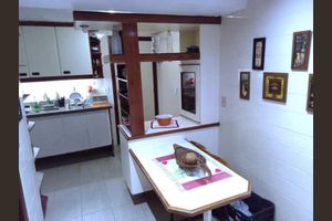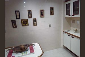 Ele dispõe de ambiente intimista para cozinhar e receber visitas.