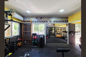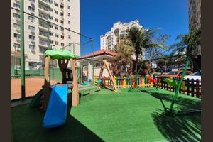 Ele dispõe de quadra para a prática de esportes, espaço coberto para entreter as crianças e equipamentos para a prática de exercícios.