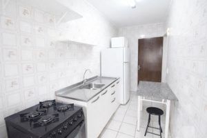 Ele dispõe de ambiente intimista para cozinhar e receber visitas.