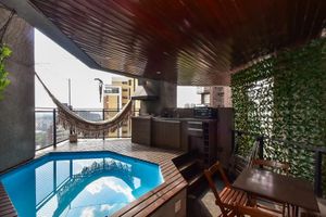 Contando com portaria 24 horas, elevador, academia, piscina, quadra esportiva, salão de festas, gás encanado, churrasqueira, sauna e lavanderia no prédio, o Edifício The Regent Flat Service é preparado para atender às necessidades dos moradores que buscam lazer e conforto em um só lugar.