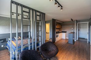 Contando com portaria 24 horas, elevador, academia, piscina, salão de festas, churrasqueira e lavanderia no prédio, o Condomínio FLY Design Studios é preparado para atender às necessidades dos moradores que buscam lazer e conforto em um só lugar.