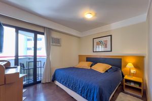 Com portaria 24 horas, elevador, academia, piscina e sauna, o Condomínio Hotel Bienal Suítes é ideal para quem busca conforto e entretenimento.