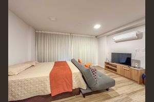 Contando com portaria 24 horas, elevador, academia, piscina, salão de festas, churrasqueira, salão de jogos e lavanderia no prédio, o Condomínio Hub Co-Living é preparado para atender às necessidades dos moradores que buscam lazer e conforto em um só lugar.