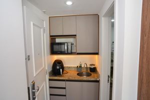 Com portaria 24 horas, elevador, academia, piscina, quadra esportiva, salão de festas, gás encanado, playground, sauna e lavanderia no prédio, o Condomínio Mediterrâneo Flat é ideal para quem busca conforto e entretenimento.