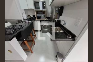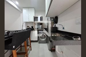 Ele dispõe de ambiente intimista para cozinhar e receber visitas.
