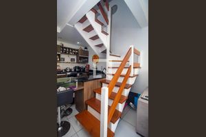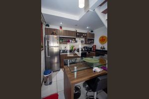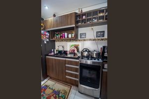 Ele dispõe de ambiente intimista para cozinhar e receber visitas.