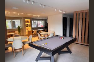 Ele dispõe de espaço coberto para entreter as crianças, parquinho para a diversão das crianças e espaço ideal para jogos e entretenimento.