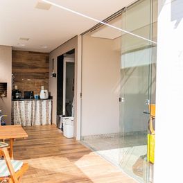 Ele dispõe de parquinho para a diversão das crianças e ambiente intimista para cozinhar e receber visitas.
