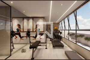 Ele dispõe de equipamentos para a prática de exercícios.