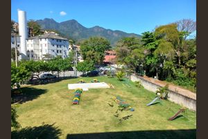 Ele dispõe de quadra para a prática de esportes.