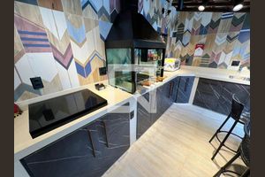 Ele dispõe de ambiente intimista para cozinhar e receber visitas.