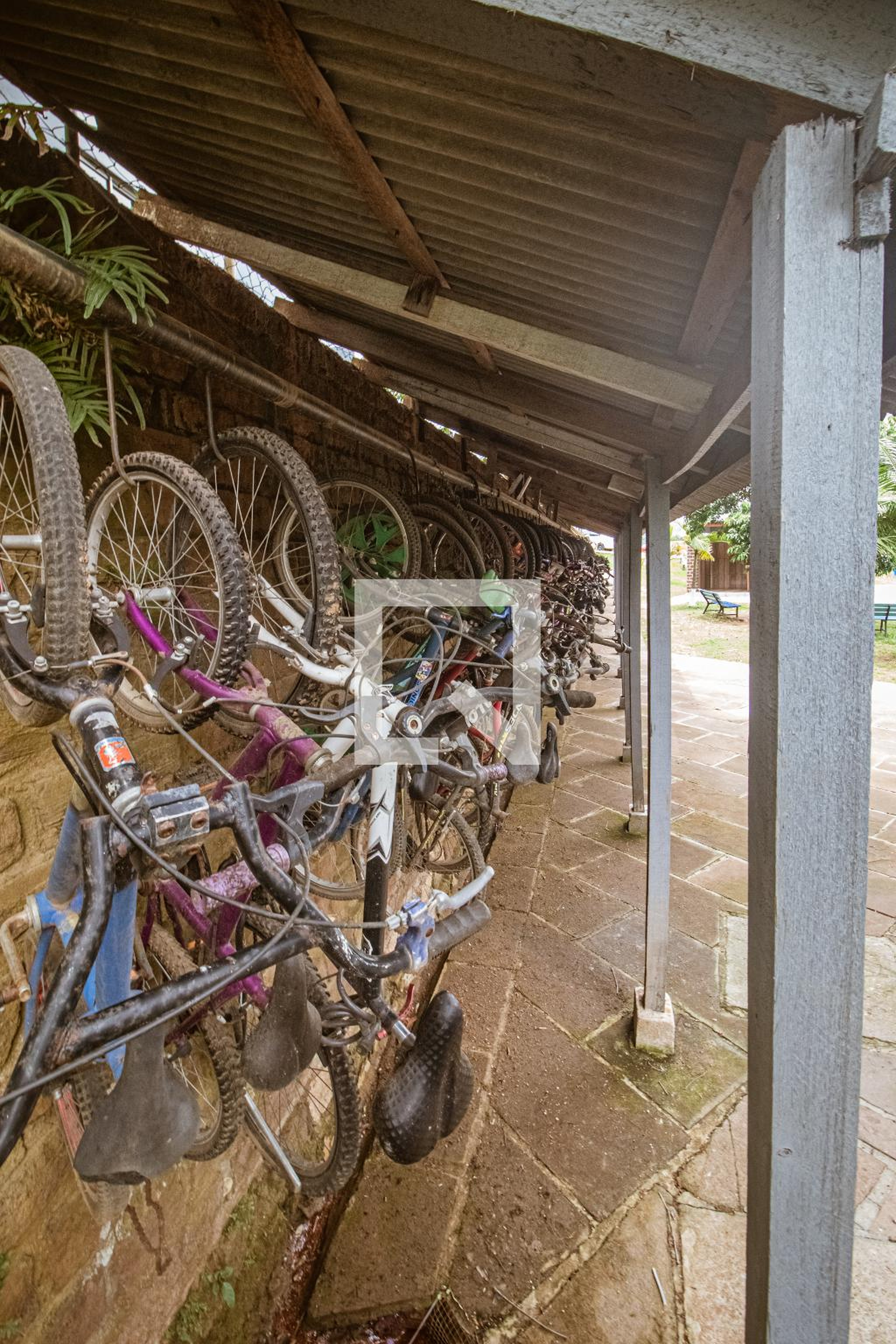 Ele dispõe de quadra para a prática de esportes, corrimão e parquinho para a diversão das crianças.