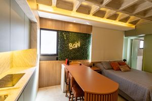 Ele dispõe de ambiente intimista para cozinhar e receber visitas e gás encanado, que garante mais segurança, economia e até um chuveiro a gás.