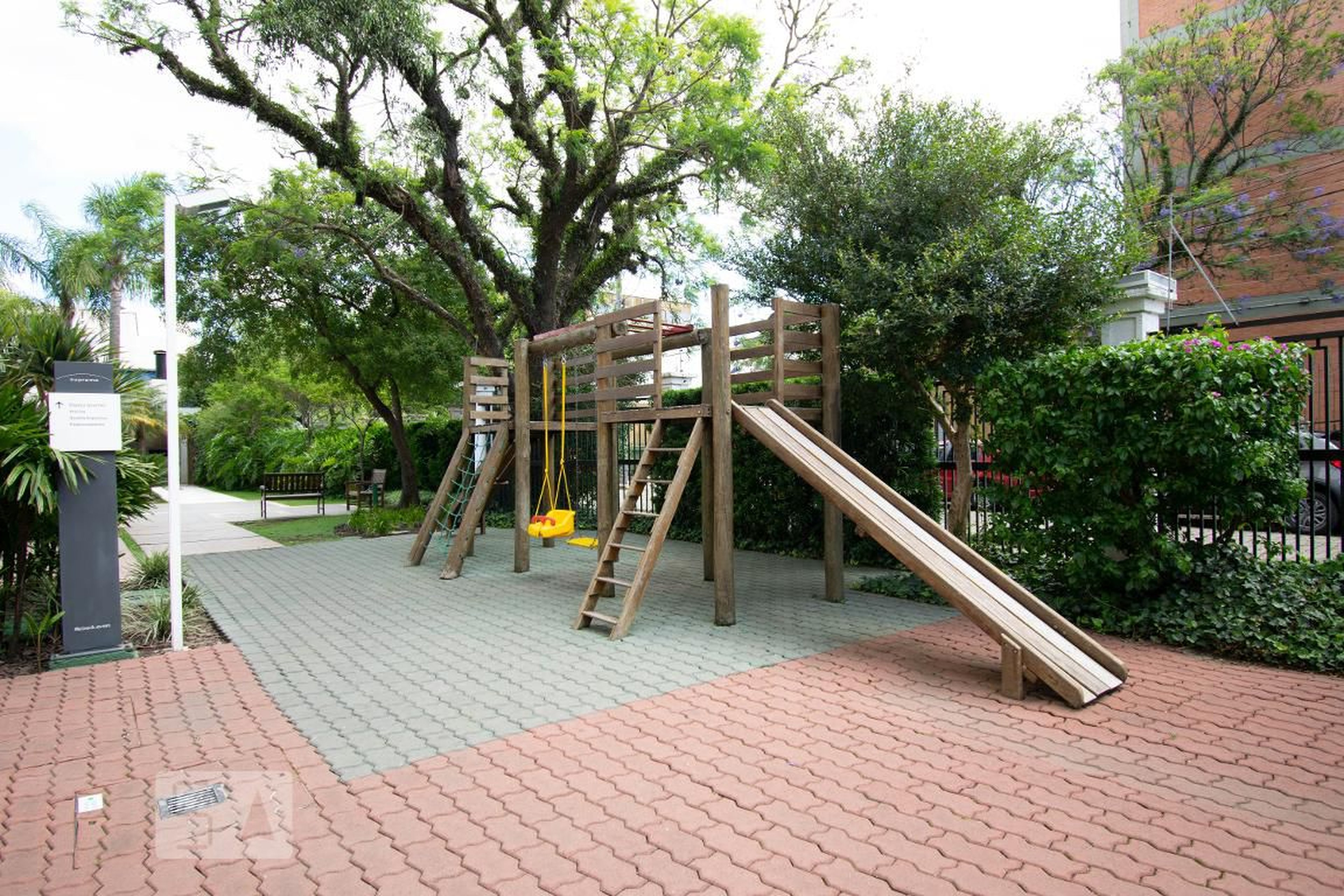 Ele dispõe de quadra para a prática de esportes, parquinho para a diversão das crianças e equipamentos para a prática de exercícios.