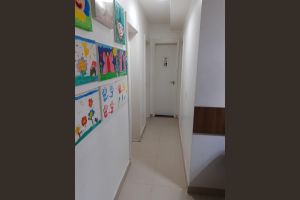 Ele dispõe de espaço coberto para entreter as crianças e equipamentos para a prática de exercícios.