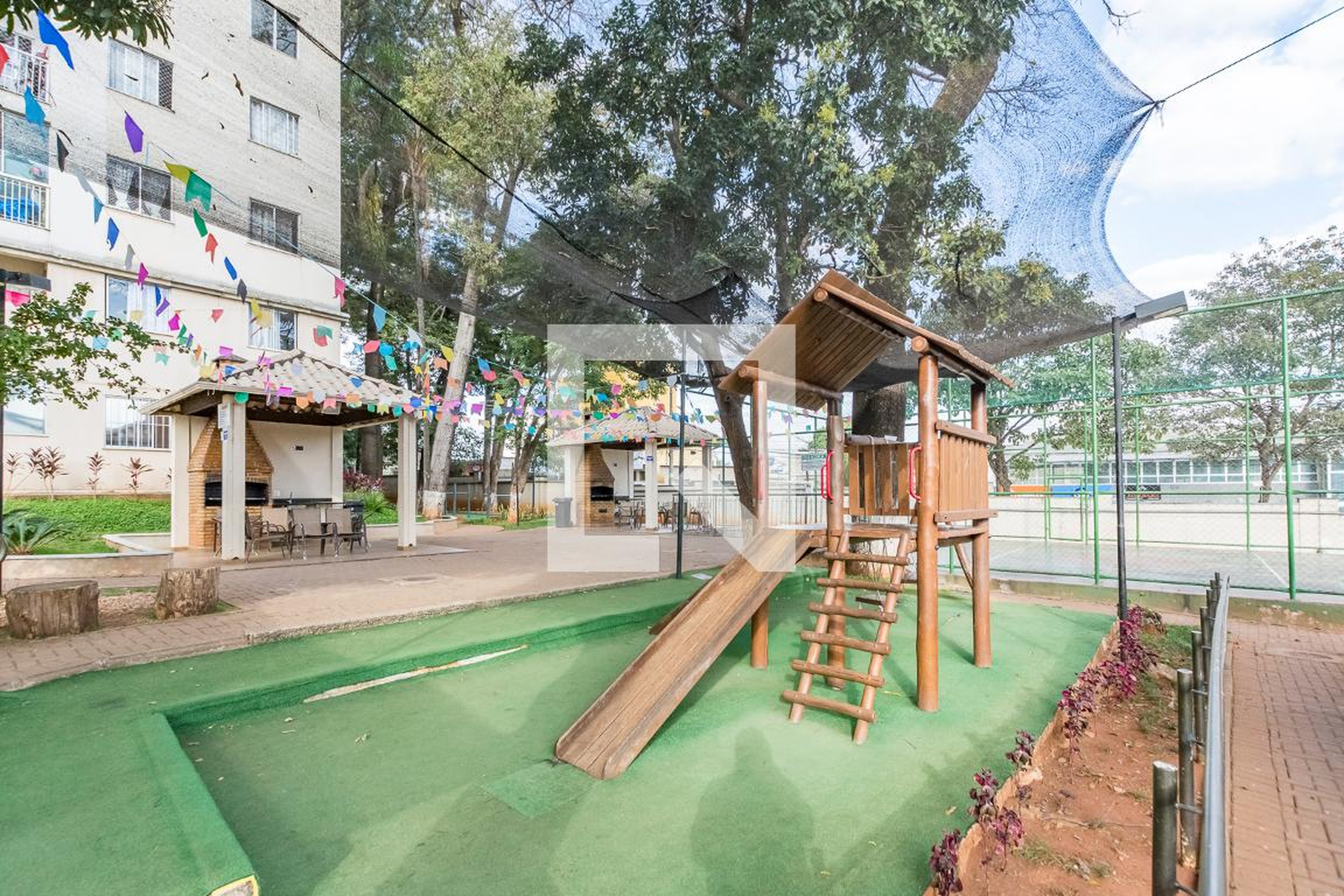 Ele dispõe de piscina para aproveitar os dias ensolarados, quadra para a prática de esportes e parquinho para a diversão das crianças.