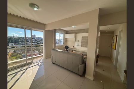 Apartamento com Living Estendido, Vista Panorâmica e Lazer de ClubeDescubra o prazer de morar em um apartamento ensolarado com vista definitiva para o pôr do sol. Originalmente com 3 dormitórios, este imóvel foi transformado para oferecer um living estendido, criando um ambiente social amplo e moderno. (Obs: A planta possui fácil reversão para o terceiro dormitório).Destaques InternosCozinha americana moderna com churrasqueira integrada, conectada ao living e à sacada. São 2 dormitórios amplos sendo 1 suíte e banheiro social. Sala de estar ampliada e excelente posição solar. Possui área de serviço funcional e 2 vagas de garagem com sensor automático de [LINK_REMOVIDO] e LazerCondomínio com hall de entrada imponente e lazer completo: piscinas adulto e infantil, academia equipada, 2 gazebos de lazer, quadra poliesportiva, playground, cineminha infantil, brinquedoteca e sala de jogos. Possui salão gourmet para [LINK_REMOVIDO]ça e LocalizaçãoPortaria 24 horas com circuito de vigilância, biometria e sensores. Localização estratégica a apenas uma quadra do Hipermercado Bourbon Zaffari. Praticidade para fazer tudo a pé.Agende sua visita!