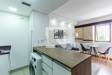 Flat super bem localizado, fica a 500 metros tanto da estação de metrô Moema como da Eucaliptos. Possui sacada de frente à avenida Ibirapuera e totalmente [LINK_REMOVIDO]ários planejados em todo apto. Possui os seguintes eletrodomésticos: ar condicionado, lava e seca Samsung, Cooktop, microondas, forno elétrico e tv. Portaria 24 horas, manobrista e limpeza incluídos no condomínio. O prédio possui piscina, sauna, academia, área de churrasco, quadra de squash e sala de reunião. Bairro tranquilo, seguro e com ótimas opções de caminhadas, academias, mercados, restaurantes e shopping. Tudo muito próximo.
