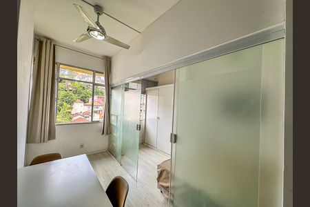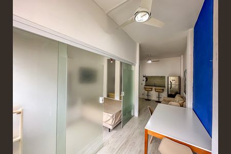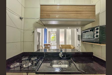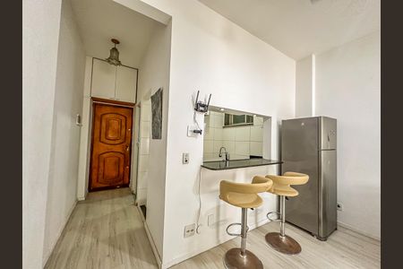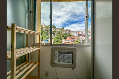 Amplo e claro apartamento MOBILIADO reformado convertido em sala e quarto com ar condicionado dentro do quarto e ventilador de teto na sala 2 ambientes com 2 sofás,sendo um sofá-cama, tv 40", mesa com 3 cadeiras e 2 banquetas giratórias junto à bancada de granito da cozinha americana. Cozinha americana planejada com armários, cooktop, fôrno elétrico e instalação de lava e seca roupas sob a pia da cozinha. Vistão panorâmico para Santa Teresa. Situado a 7min caminhando até o metrô Glória e a poucos metros da Escadaria Selaron. Rua bem policiada pelo Lapa Presente. Este apartamento estará disponível para locação a partir do dia 25 de fevereiro de 2026.