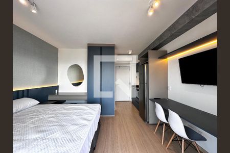 Studio totalmente mobiliado com móveis planejados, penúltimo andar (22o) com vista linda, tela de proteção na sacada, todo em papel de parede, novinho com tudo de primeira qualidade, cama queen com baú, ar condicionado quente e frio, leds no espaço, portaria 24h, academia, piscina, salão de festas, salão de jogos, bicicletário e lavanderia no prédio, próximo de bons restaurantes, colégios, faculdades, hipermercados, Shopping e 5 minutos andando do metro Borba Gato.