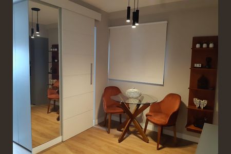Apartamento no 2º andar, reformado, lado do sol, com armários embutidos em todos os ambientes, porta de correr, piso vinílico, box, chuveiro, lustres, varal mágico escondido, espelhos, telas nas janelas e persianas rolo black-out. Prédio com 7 andares de apartamentos com elevador, no 8 andar tem um solário e uma área goumert. Portaria eletrônica com biometria facial.