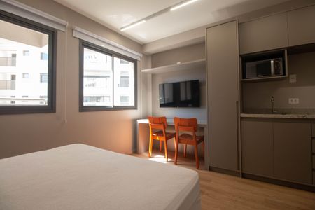 Apresentamos o Studio 512 do condomínio Cyrela Atmosfera 360, uma oportunidade única de moradia no coração do Brooklin. Este moderno apartamento de 21 m foi projetado para oferecer conforto e funcionalidade em um espaço otimizado.Destaques do apartamento:- Design Inteligente: Ambiente integrado que une sala, dormitório e cozinha, proporcionando praticidade e aproveitamento máximo do espaço.- Acabamentos de Qualidade: Detalhes que refletem sofisticação e bom gosto, alinhados ao padrão Cyrela.- Infraestrutura Completa: Preparação para ar-condicionado e tomadas USB, atendendo às necessidades modernas.Áreas comuns e lazer:- Piscina com Raia: Ideal para momentos de lazer e prática de natação.- Fitness Center Equipado: Espaço completo para seus treinos diários.- Salão de Festas e Espaço Gourmet: Ambientes perfeitos para confraternizações e eventos sociais.- Brinquedoteca e Playground: Diversão garantida para as crianças em ambientes seguros.- Pet Place: Área dedicada para o lazer dos pets.Localização privilegiada:Situado na Rua Cancioneiro de Évora, 85, o condomínio está em uma área tranquila e arborizada do Brooklin. A poucos minutos das avenidas Santo Amaro e Roque Petroni Jr., oferece fácil acesso ao transporte público, incluindo a estação de metrô Brooklin. Além disso, está próximo a shoppings renomados como Morumbi e Market Place, bem como uma variedade de restaurantes, supermercados e serviços essenciais.Este studio é a escolha perfeita para quem busca praticidade, conforto e uma localização estratégica em São Paulo.
