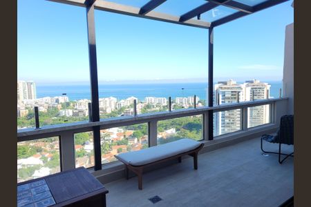 Luxuosa cobertura linear no Riviera del Fiori, sol da manhã, todos os cômodos com vista para Pedra da Gávea e mar. Totalmente reformada há apenas 01 ano, decorada em um projeto único e exclusivo com materiais de altíssima qualidade. Varanda gourmet com churrasqueira, salão em três ambientes, sala estar com surround, jantar com mesa em mármore carrara, projeto de iluminação touch smart e ar condicionado split. Três suítes, master com closet e banheiro com pia dupla. Armários planejados Lacca.