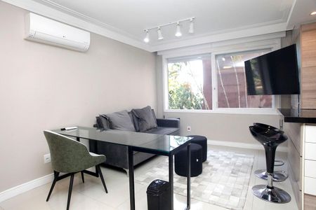 Aconchegante estúdio totalmente reformado, finamente decorado e mobiliado com móveis e eletrodomésticos de ótima qualidade. Cozinha totalmente equipada em estilo americano banheiro social e um amplo closet o que trás além do conforto a praticidade para o dia a dia. Localizado no Bairro Moinhos de vento a poucos metros do Shopping Moinhos, e da charmosa rua Padre Chagas, cartão postal da cidade que encanta os turistas e todas as conveniências que a região oferece. Possibilidade de vaga no prédio