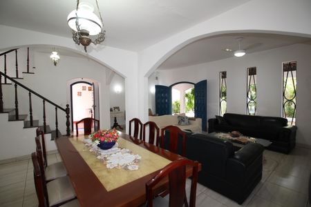 Excelente casa duplex na Freguesia, com 4 quartos amplos, sendo uma suíte e banheiro social, com armários planejados, todos no andar [LINK_REMOVIDO] primeiro piso, salas de estar e jantar com amplas janelas, porta social, lavabo, escada de acesso ao segundo piso com acabamento [LINK_REMOVIDO] e cozinha com acesso a parte externa, varanda que apoia a parte de lazer com Churrasqueira, bancada, piscina.Área de serviço completa..