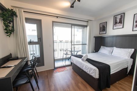 Estúdio Novíssimo completamente mobiliado. Piso vinílico amadeirado de primeira linha com toque rústico e aconchegante. Móveis planejados de excelente qualidade. Sacada com grande abertura que proporciona boa luminosidade e ventilação natural. Inclui cama box (baú) com colchão (pouquíssimo uso), painel decorativo, Smart Tv 32", Bancada para trabalho ou refeições, mesa na sacada, 03 cadeiras, sofá-cama dois lugares, cooktop de indução, geladeira, micro-ondas e forno elétrico. Tudo muito novo!!! O condomínio dispõe de Academia, Lavanderia(OMO), Cowork, área de convivência e bicicletário. Localizado a 5 minutos a pé da estação de metrô São Joaquim e a 8 minutos da estação Liberdade.