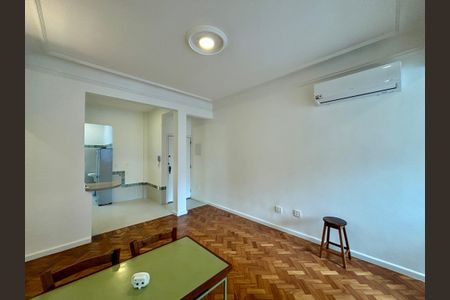70m2, totalmente reformado, com instalação elétrica trifásica, 3 aparelhos de ar-condicionado split de última geração, 3 janelas de vidro duplo antirruído e cozinha moderna agregada à sala, com cooktop e forno elétrico embutido. Instalações para geladeira, lava-louças e [LINK_REMOVIDO] e último andar, com vista para a área de lazer de shopping-hotel, com estacionamento rotativo 24h, em frente à portaria do prédio, que também é 24h. É permitido aluguel por [LINK_REMOVIDO]óximo à estação Siqueira Campos do Metrô, aos supermercados Mundial e Pão de Açúcar, Casas Pedro, Padaria NEMA, HortiFruti e diversos cafés, restaurantes e farmácias. E, claro, da praia de Copacabana