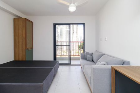 Studio novo 25m, com vista livre e sol indireto. Conta com armários na cozinha e banheiro, box, chuveiro elétrico, ventilador de teto, Cooktop, mesa de escritório, aparador para refeições, base box de cama queen e sofá.Condomínio conta com churrasqueira, pet place, coorking, salão de festas, espaço externo, 3 elevadores de acesso, localização privilegiada bem próximo do metrô Brooklin estação linha lilás, fácil acesso ao Shopping Morumbi, Avenida Chucri. Venha conhecer pessoalmente.