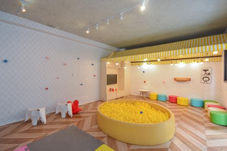 Playground, Piscina, Churrasqueira, Quadra esportiva, Academia, Salão de festas, Lavanderia no prédio, Brinquedoteca, Corrimão, Rampas de acesso, Salão de jogos, Área verde, Elevador, Portaria 24h