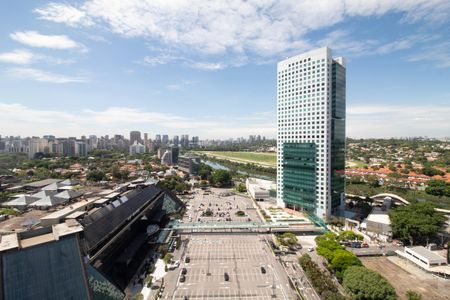 Apartamento novo com todos os móveis planejados (todos os armários, mesa do quarto, rack da sala etc.), pedras da cozinha e do banheiro feitas sob medida e eletrodomésticos de alta qualidade incluídos (cooktop, forno, lavadora e secadora, microondas, geladeira, TV) e comprados pensados para se encaixar e harmonizar com o apartamento. Únicos moradores até hoje fomos nós, os proprietários. Localizado no último andar do prédio (21), com vista ampla para o jockey clube e faria lima.Prédio em frente ao Shopping Eldorado e a 700m da Faria Lima e do metrô.