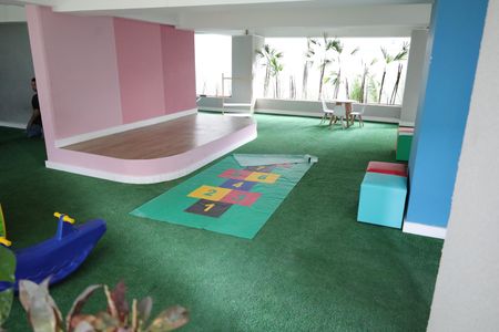 Playground, Quadra esportiva, Academia, Salão de festas, Lavanderia no prédio, Brinquedoteca, Corrimão, Piso tátil, Rampas de acesso, Salão de jogos, Vaga de garagem acessível, Área verde, Elevador, Portaria 24h