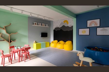 Playground, Piscina, Churrasqueira, Academia, Salão de festas, Brinquedoteca, Corrimão, Piso tátil, Rampas de acesso, Salão de jogos, Área verde, Elevador, Portaria 24h