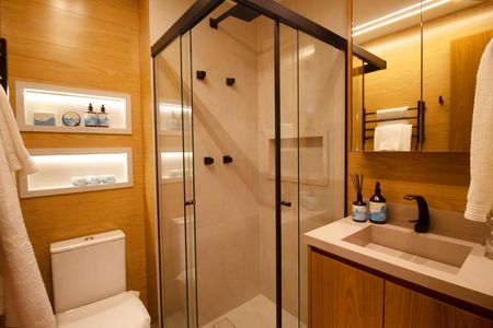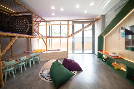 Piscina, Academia, Salão de festas, Lavanderia no prédio, Brinquedoteca, Corrimão, Piso tátil, Rampas de acesso, Vaga de garagem acessível, Área verde, Elevador, Portaria 24h